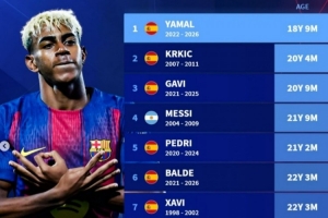 體育資訊4月15日訊 在歐冠1/4決賽次回合,巴薩2-1擊敗馬競,亞馬爾達成巴薩生涯150次出場里程碑。德轉(zhuǎn)盤點了巴薩隊史達成150次出場最年輕紀錄榜,具體如下:
