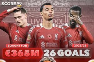 利物浦總共花費(fèi)3.65億歐引進(jìn)維爾茨、?;倏?、伊薩克,三人本賽季總共打入26球,只比迪亞斯多攻入3球。