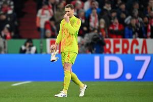 體育資訊4月16日訊 歐冠1/4決賽次回合,拜仁在主場迎戰(zhàn)皇馬。本場比賽剛剛開場,主隊門將諾伊爾就因失誤導(dǎo)致丟球,皇馬小將居萊爾破門得分。