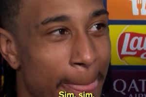 播吧4月16日訊 歐冠1/4決賽次回合比賽,拜仁主場4-3擊敗皇馬,兩回合總比分6-4晉級,奧利塞攻入關(guān)鍵進球,當(dāng)選此役最佳球員,賽后他接受采訪時發(fā)生了有趣的一幕。