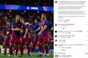 “我們已經(jīng)傾盡全力,但這次還是不夠。對(duì)于球隊(duì)、俱樂(lè)部以及我們的球迷來(lái)說(shuō),這是一個(gè)艱難的時(shí)刻,因?yàn)檫@項(xiàng)賽事對(duì)我們意義重大。我們?cè)跉W冠的征程到此結(jié)束,但這支球隊(duì)才剛剛開始一段特別的旅程。我們會(huì)學(xué)習(xí),會(huì)成長(zhǎng),并且將以更強(qiáng)的姿態(tài)歸來(lái)。感謝每一位在每一步都支持我們的人。我們感受到了你們的熱情和信任,我們將繼續(xù)努力,為這個(gè)俱樂(lè)部帶來(lái)歡樂(lè)和榮譽(yù)。為能身披這身球衣而感到自豪,為能成為這支球隊(duì)的一員而感到自豪。永遠(yuǎn)的巴薩 ???? ”