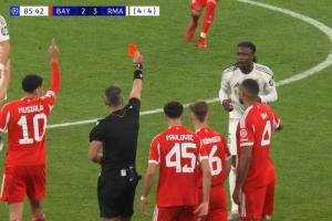 體育資訊04月16日訊 歐冠1/4決賽次回合,十人皇馬3-4總比分4-6遭拜仁淘汰,本場比賽堪稱精彩,兩隊上半場合計轟入5粒進球,并且皇馬半場成功將首回合的劣勢扳平。但比賽最后時刻,卡馬文加被紅牌罰下無疑讓整場比賽風云突變。