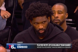據(jù)統(tǒng)計,恩比德生涯的出勤率僅51%,單賽季出戰(zhàn)場次從未超過68場(最高就是2021-22賽季的68場)。