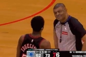 畢竟新秀!埃奇庫姆和薩格斯發(fā)生摩擦 被吹技犯后努力跟裁判辯解