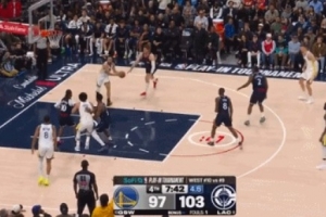 GIF-波爾津吉斯妙傳庫里 后者上空籃得分
