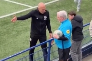 在中場(chǎng)休息時(shí),他與裁判員進(jìn)行交談,而作為球員家長(zhǎng)在場(chǎng)的維弗雷德·赫尼——早些時(shí)候他在熱身階段便已未經(jīng)許可擅自進(jìn)入場(chǎng)地——此時(shí)又不請(qǐng)自來(lái)地介入了這場(chǎng)對(duì)話。