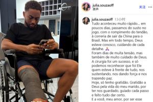 一切來得太突然…這幾天從比賽中的驚魂一幕,到肌腱斷裂,再到返回巴西接受治療,盡管匆忙,但上帝一直與我們同在。手術(shù)很成功,希望上帝守護(hù)我們,給我們力量,保我們平安。
