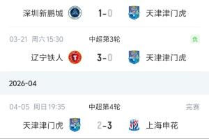 體育資訊04月05日訊 中超第4輪,天津津門虎主場2-3被上海申花逆轉(zhuǎn),雖然球隊取得了賽季進球0的突破,但是仍1平3負積-9分中超墊底。