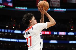 上半場,奇才新秀萊利頻頻殺傷,出戰(zhàn)20分鐘9投3中,三分5中2、罰球9中7拿半場最高15分外加1籃板3助攻,正負(fù)值-1。