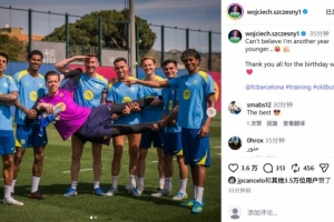 體育資訊4月18日訊 巴薩門將什琴斯尼今日迎來36歲生日,球隊(duì)在訓(xùn)練場(chǎng)上也擺出造型為其慶祝生日。