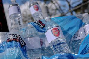 體育資訊04月19日訊 據(jù)記者James Olley報道,有曼城球迷在阿提哈德球場外售賣貼有阿森納隊徽的礦泉水,售價2鎊一瓶。