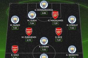體育資訊4月19日訊 本輪英超焦點(diǎn)戰(zhàn)曼城對(duì)陣阿森納即將打響,數(shù)據(jù)網(wǎng)站W(wǎng)hoscored也列出本賽季兩隊(duì)球員在英超場(chǎng)均評(píng)分最高陣,其中曼城7人在列,具體如下: