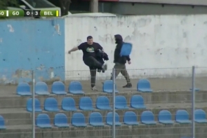 新戈里察目前在斯洛文尼亞第二級(jí)別聯(lián)賽中排名墊底,距離安全區(qū)有九分之差。當(dāng)ND貝爾廷齊的多米尼克·德?tīng)柨舜蛉氲谌驎r(shí),一名新戈里察球迷一腳將看臺(tái)座椅踢飛到了空中。