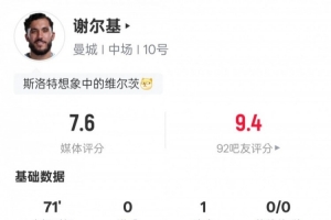 體育資訊4月4日訊 足總杯1/4決賽,曼城主場迎戰(zhàn)利物浦,謝爾基首發(fā)出戰(zhàn),貢獻(xiàn)1次助攻,還有3次過人成功和2次關(guān)鍵傳球,評分7.6。