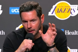 記者:“嘿,JJ。哦,抱歉,你先說(shuō)吧。顯然,勒布朗的角色最近發(fā)生了很大變化。當(dāng)你談到展現(xiàn)斗志時(shí),看到像勒布朗這樣41歲的老將依然在場(chǎng)上拼盡全力,其他人自然也不敢松懈。你剛才提到你們開了個(gè)會(huì),他當(dāng)時(shí)在會(huì)上給大家傳達(dá)了什么信息?”