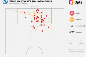 格林伍德加盟馬賽以來出戰(zhàn)76場比賽,參與62粒進(jìn)球。