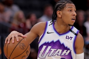 上半場(chǎng)爵士球員肯尼迪·錢德勒13中8,三分2中1砍下17分3板6助攻,貝茲·姆本9中7,三分2中1,罰球3中2砍下17分4板8助攻。