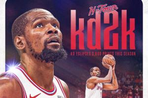 這是杜蘭特NBA生涯第8次單賽季得分2000+。