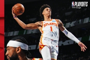 本場比賽過后,老鷹戰(zhàn)績來到46勝35負,上升至東部第五,正式鎖定季后賽(東部前六)和東南區(qū)冠軍。