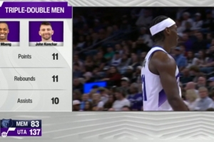 爵士主場迎戰(zhàn)灰熊,截至發(fā)稿貝茲·姆本和康查爾同時達(dá)成三雙。