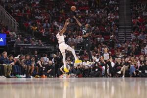 我們即使沒有三分球也得了130分,但是當(dāng)有人在你頭上投進(jìn)干拔三分,而且他們比你多進(jìn)了11個(gè)三分球時(shí),這很傷士氣。如果我們能把這個(gè)差距縮小一半,或者我們也多進(jìn)幾個(gè),這很容易就是我們要贏20分的比賽。所以三分球線一直是很多球隊(duì)贏球的原因,這是這個(gè)聯(lián)盟很多球隊(duì)之間的區(qū)別。嗯,所以你得稱贊他們投進(jìn)了一些球,但我們得到的分?jǐn)?shù)足以贏下比賽。