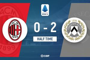 上半場比賽結(jié)束,AC米蘭0-2烏迪內(nèi)斯。