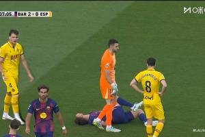比賽第37分鐘,西班牙人的一次進(jìn)攻,巴薩中衛(wèi)馬丁突然痛苦倒地。但隨后他在隊(duì)醫(yī)的處理后看起來(lái)問(wèn)題不大,回到了比賽。