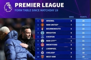 德轉(zhuǎn)統(tǒng)計(jì)了同期(自第19輪以來)英超各隊(duì)的積分情況,熱刺是唯一沒有取勝過的球隊(duì),而且球隊(duì)同期積分排在英超20支球隊(duì)的最后一位。