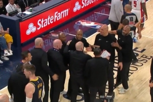 GIF-斯勞森背后撞倒斯圖爾特被吹二級惡意直接驅(qū)逐,雙方助教團小沖突各自吃T