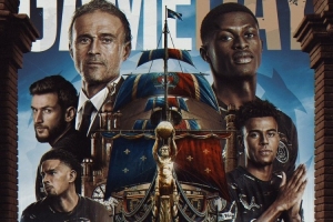 巴黎官方社媒曬出了為此役制作的海報(bào),以海洋和巨型帆船為核心元素,恩里克攜努諾·門德斯、克瓦拉茨赫利亞、杜埃、扎伊爾·埃梅里出鏡